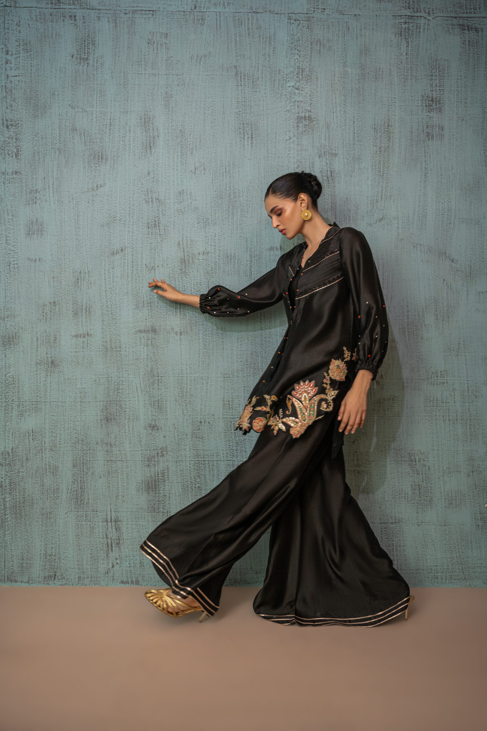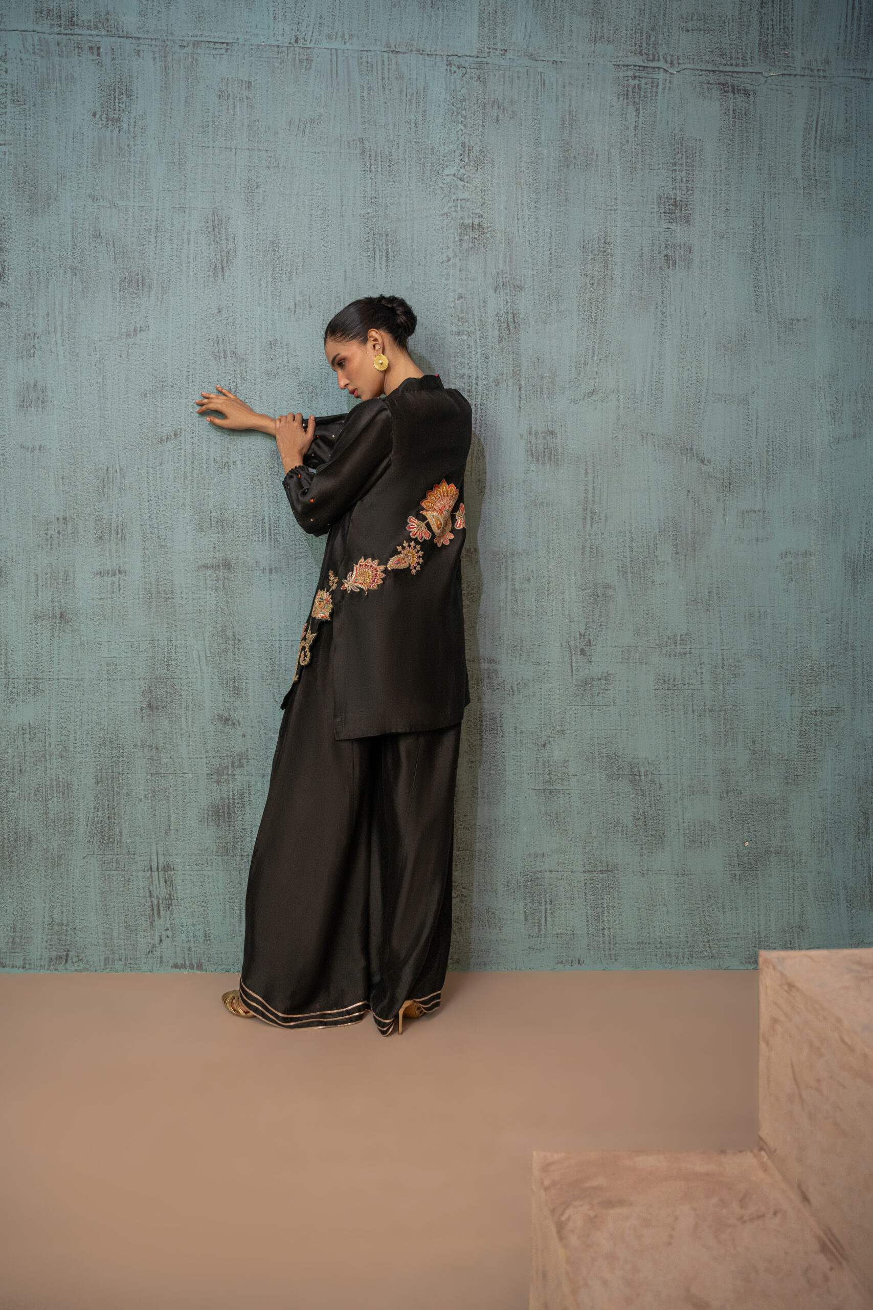Each of our products is designed with high-quality standards and careful attention to details. Store the outfit in a garment bag. Iron with care. Dry clean only.